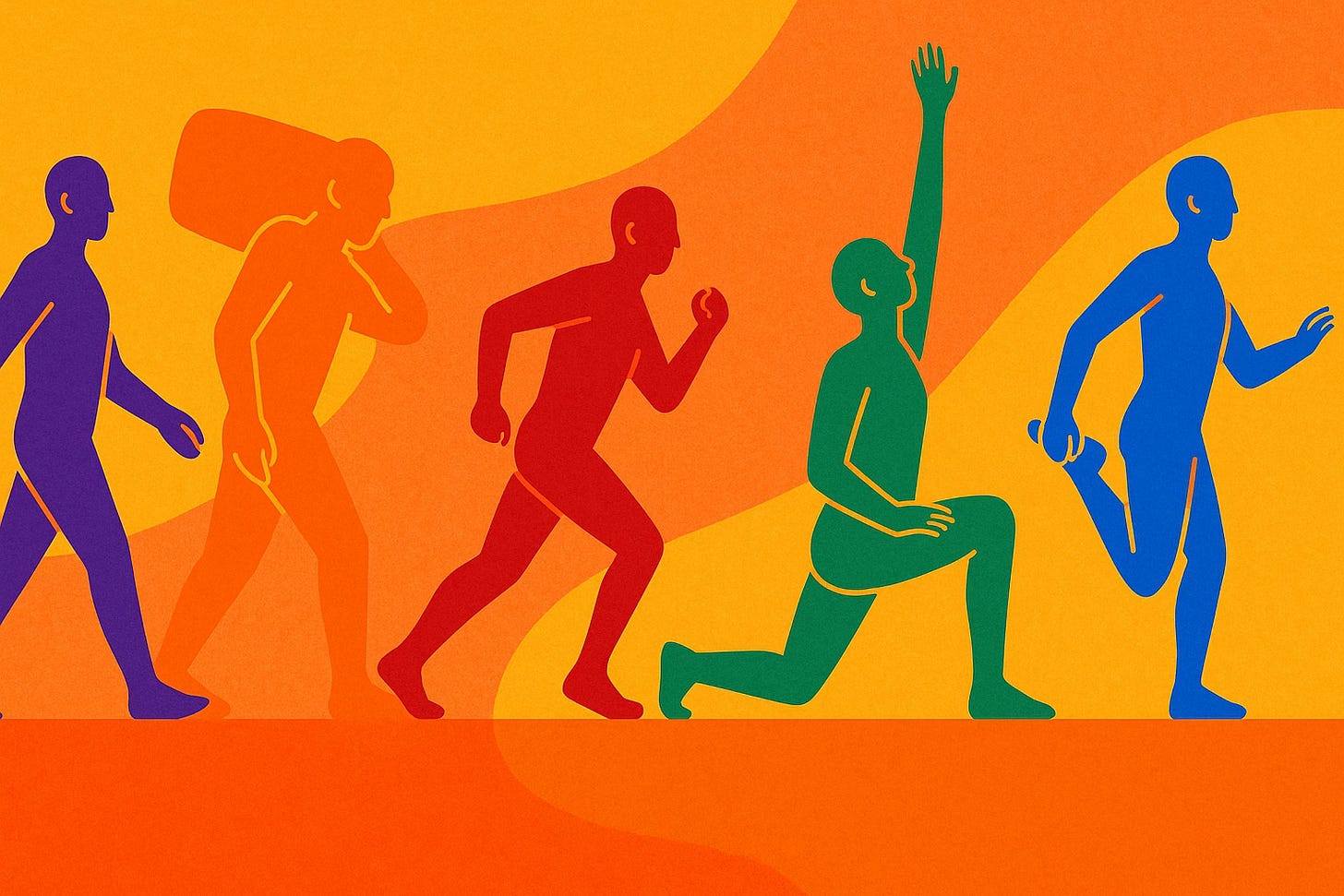 Our ancestors moved 6–8 hours per day naturally: hunting, foraging, escaping predators, building shelters. As anthropologist Herman Pontzer (author of Burn) reminds us, the human body is designed for constant, varied movement — not one isolated hour on a treadmill.