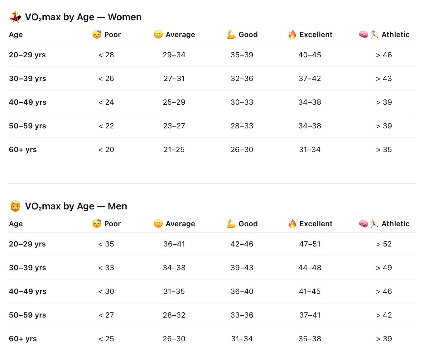 🧮 What’s a “Good” VO₂max by Age and Gender?